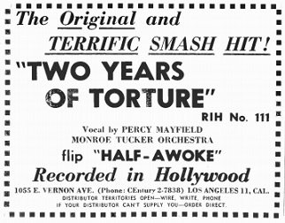I’m talking about the fact that Percy Mayfield, whom we last saw in September 1949 on the about to go out of business Supreme Records, would have his lone release for that label be re-issued on the equally small Record In Hollywood imprint this past month where it’d promptly soar up the charts, establishing Mayfield as one to watch. It’d be the success of that record which would lead to him signing with Specialty Records where he’d quickly become a star while establishing himself as one of the most unique and original performers in rock’s first half dozen years.