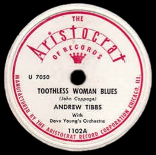 To start with there’s the problem of the lyrical sentiments being out of whack with the musical arrangement. If you listen to Toothless Woman Blues without paying much attention to the words of the song you’d think this was a sorrowful lament of some sort. Maybe Tibbs’s girl has left him, or perhaps he’s bemoaning the lack of interest of any female in the vicinity. His tone is despondent, he’s effectively crying his lines and investing them with an emotional quality that reflects a downcast outlook, and to be fair he does this quite well. His gospel training comes to bear in the way he worries each line, drawing the words out, injecting breathy pauses and choked off sobs to emulate grief.