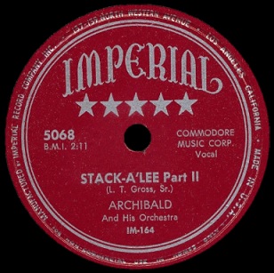 But for the generation coming of age at the mid-point of the Twentieth Century who weren’t born when those early versions were made, nor had any real knowledge of the actual events that gave birth to the song, it was an otherwise little discussed figure in music history known professionally as simply “Archibald”, who brought the legend of Stack-A-Lee to life for the rock ‘n’ roll audience with an epic two-part single that made the Top Ten nationally, in the process making this the first legitimate gangsta hit in rock history.
