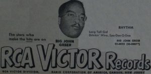 We just got done detailing why, in spite of the requisite musical components and enthusiasm of the singer and band, the results of Big John Greer’s attempts at competing with the more authentic rockin’ efforts of Stick McGhee and Wynonie Harris, the originator of Drinkin’ Wine Spo-Dee-O-Dee in the case of the former and the owner of a more appropriate cover version that went Top Five in the case of the latter, were probably bound to be in vain.