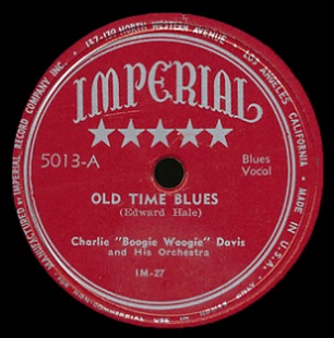 But in late 1947 when Charlie “Boogie Woogie” Davis cut his only sessions for Imperial Records, neither he nor the company had any hint that the terminology would soon be changing and so we’re stuck with Old Time Blues which despite its title is not the blues, nor is it jazz or pop despite an early lean towards both instrumentally.