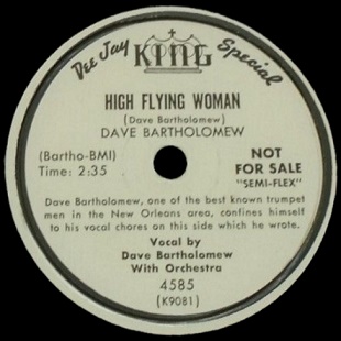 In fact not until his final session in January 1952 did they let him play with his own band while he self-produced the date in New Orleans. Prior to that he cut the sides in Cincinnati under Henry Glover’s direction while using Todd Rhodes’s band, out of which came High Flying Woman, a recording already sixteen months old, though at least he wrote this himself.