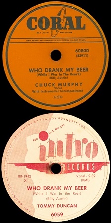 The latter designation definitely includes this song which is more than quirky enough to assume it came from his own pen, but in fact Who Drank My Beer While I Was In The Rear was written by Billy Austin and already saw two releases in the last few months, one by Chuck Murphy and the other by Tommy Duncan.