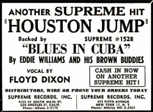 While both Williams and Dixon were from Texas and thus didn’t need a roadmap to find Houston the fact is Eddie Williams was in Los Angeles playing professionally with Moore since 1942 while Dixon only recently hit the coast from Lone Star state where he’d been haunting the Gulf Coast Region and soaking up the sounds.