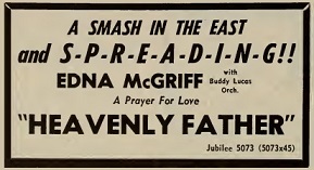 But maybe some higher power felt that asking for it in such a commercial way devalued the prayer, for while we don’t know what happened to the boy in question, we do know that Edna McGriff died at the tragically young age of 44 in 1980, perhaps the price she paid for scoring a hit in this fashion.