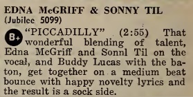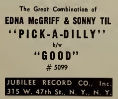 (Visit the Artist page of Edna McGriff as well as Sonny Til for the complete archive of their respective records reviewed to date)