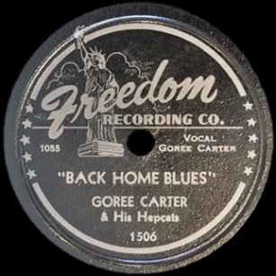 Staring up at you from its surface is the cause of all of this devastation, a harmless looking piece of black shellac affixed with a label reading Goree Carter & His Hepcats.