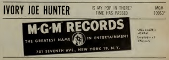 (Visit the Artist page of Ivory Joe Hunter for the complete archive of his records reviewed to date)