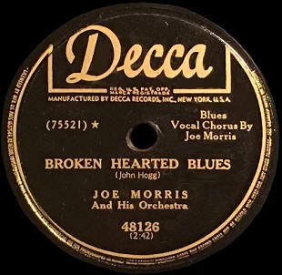 Looking at Morris’s track record prior to this we see that almost without exception he, or his band members, wrote their own material. Now in their first session for Decca they were cajoled into tackling Broken Hearted, a rising hit by Eddie Williams & His Brown Buddies.