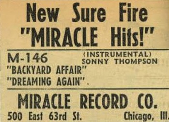 For a small label like Miracle Records this would likely be the case even more, since their roster was decidedly limited and their sales were largely confined to just a handful of names. Though bluesman Memphis Slim scored consistently with them as well, it was Sonny Thompson who came to represent Miracle Records best. Not only did he have the biggest – and most – hits the company released during its six years of existence, but he also played behind other artists on the label in his role as the leader of the band in the studio.