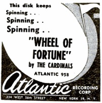But when The Cardinals, a rock vocal group on Atlantic Records, went in the studio back in early October to cut their rendition of The Wheel Of Fortune in a normal session, none of these records were on the radar and so it was simply a case of a latching on to a promising song that hadn’t had a definitive performance come out of it yet.