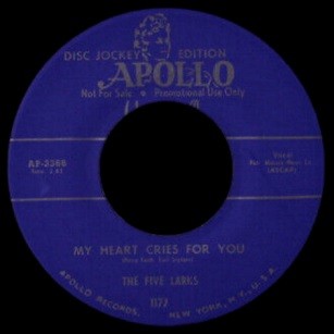 Considering Apollo Records fought off three other record companies to “win” the rights to The Larks this seems a rather bewildering choice with which to launch their proper career. Not only was it a song that already everybody in America who could carry a tune in a bucket had seemingly recorded, up to and including your doddering old Aunt Hilda, but My Heart Cries For You wasn’t something that played to the group’s strengths… or to the company’s vision for them.
