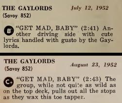 But if that’s the excuse being proffered by Savoy to explain their subpar returns for what really should be one of the premier acts of their day, then that might be why with Get Mad, Baby the label doubled down on the uptempo formula with The Gaylords, the group they surely had to feel was a solid bet to break wide open with one of these sides, if not both.
