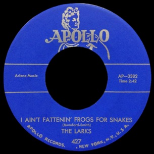 An ironic footnote to our story is that in 1957 Sonny Boy Williamson, who’d done the original version of Eyesight To The Blind, which The Larks covered on the top side of this, cut a totally different song called I Ain’t Fattenin’ Frogs For Snakes undoubtedly leading to years of confusion regarding this single.