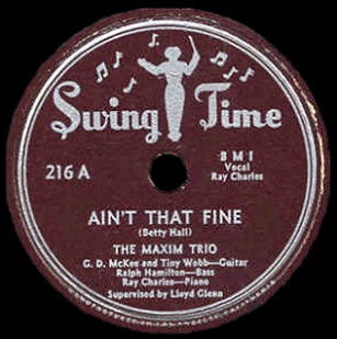 Maybe we shouldn’t read too much into this… it could be the sales on I’ve Had My Fun didn’t match his earlier singles and so they reverted to the moniker the public was more familiar with… or it could be that this one has the trio’s guitarist Gosady McGee rather than Tiny Webb (both are credited on the label but there’s only one guitarist and so maybe they didn’t know themselves which it was). There’s also a real possibility that with the new Swingtime label name they needed to get as many records on the shelves as possible and were better able to do so by issuing these with different artists credited (and for that matter, the release dates of these first few Swingtime singles is approximate… they could’ve all come out at once, or a few weeks or even months apart, so take them with a grain of salt).