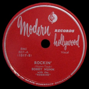 Their latest effort in this regard is called Rockin’, just about the only new thing about it, but while the “Taub” writing credit was Modern’s standard procedure for stealing of half the songwriting royalties, the other writing credit went to Bobby Nunn himself, The Robins’ lead singer and primary songwriter within the group itself.