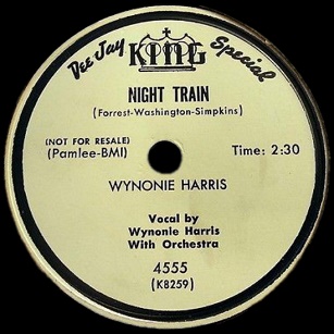 Trade in those trumpets, trombones and one alto for a single baritone and maybe this might stand a chance. Then again, it probably wouldn’t at that, not as long as Wynonie Harris is caught between lackadaisical and uninterested in his vocal performance. While we can marginally commend him for toning things down considerably from his usual egotistical strutting, he’s still not quite embodying the spirit of Night Train which finds him bemoaning the loss of his girl who hightailed it out of town on the 5:15 or something because he treated her bad.